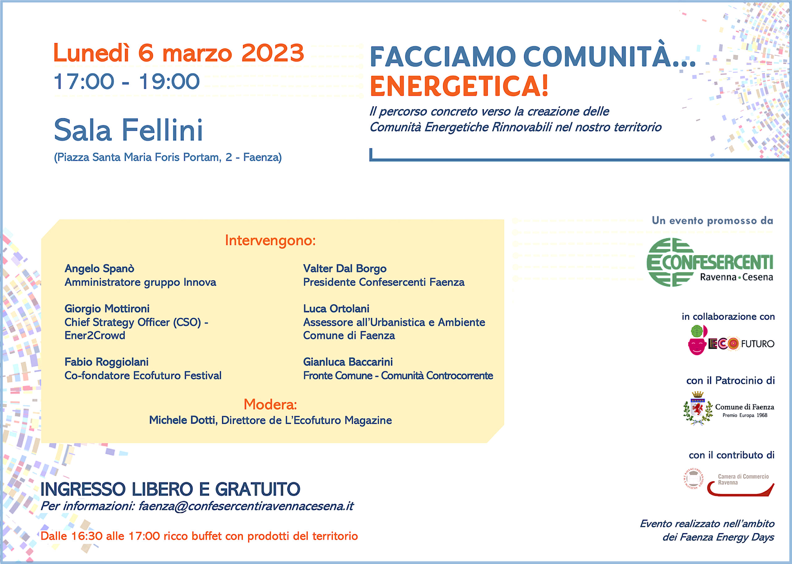 Facciamo comunità... energetica! Le iniziative del 5 e 6 marzo a Faenza